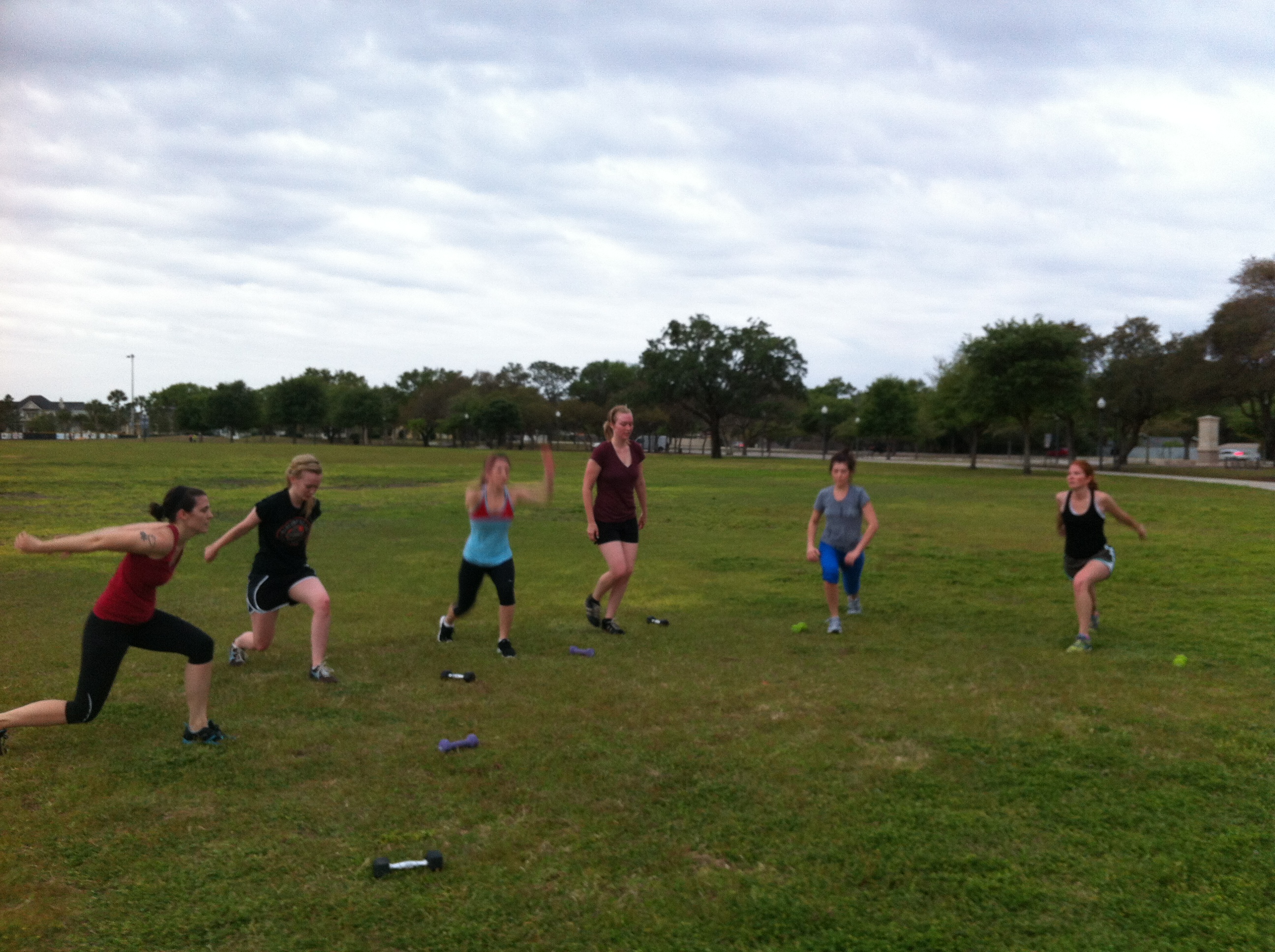 This week my seventh wedding anniversary (yes, thank you) was celebrated on Monday night so I had to miss the first workout of the week. I made plans to make it up by myself at the park Friday morning but was pretty much dreading every moment of it, especially after I actually experienced this week’s workout early Wednesday morning. But much to my happy surprise, I discovered that when I let the ladies know my intentions to have a personal solo session, they were all eager to join in! I can’t tell you what an encouraging feeling that is on so many levels. First, it lets me know that these other women are actually enjoying themselves and that they actually feel the benefits of this boot camp themselves. It makes me feel like I am a part of something more than me just wanting to look and feel better but that I am a part of a little community of women who want to look and feel better too and are committed to it.